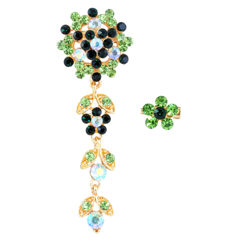 Броши Два цветочка с зелеными стразами