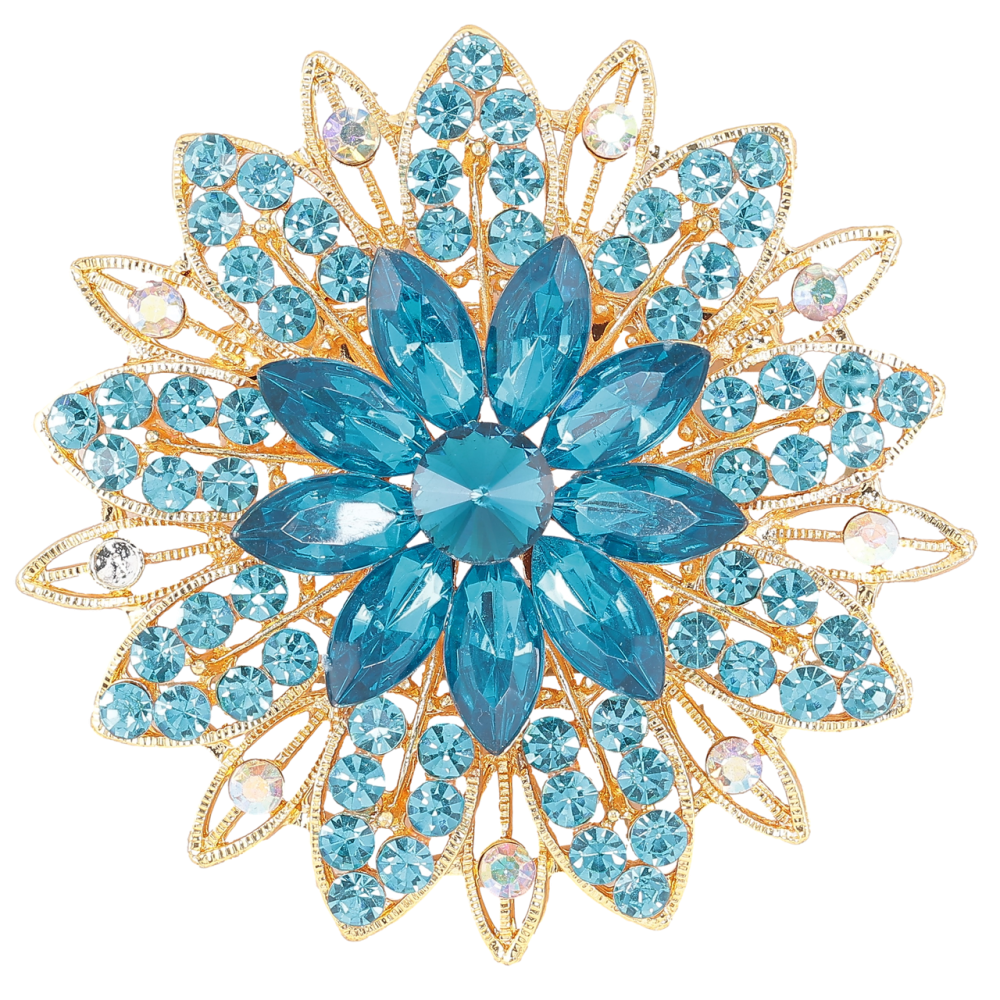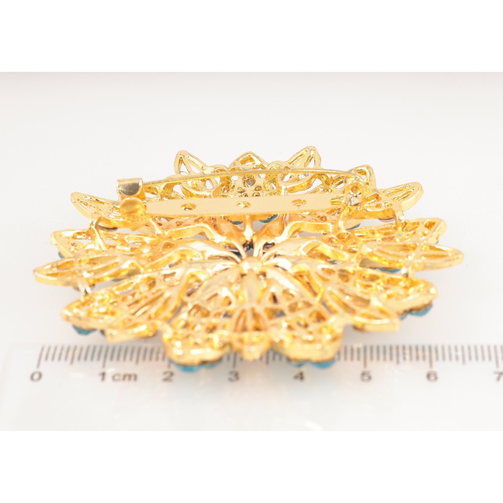 Брошь Цветок с бирюзовыми стразами