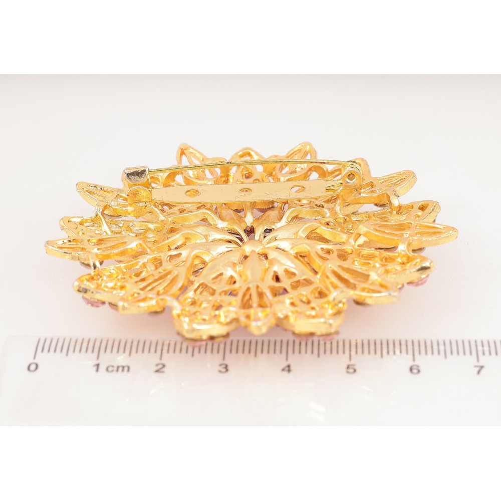 Брошь Цветок с розовыми стразами
