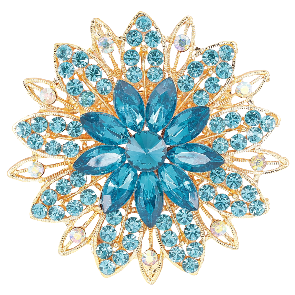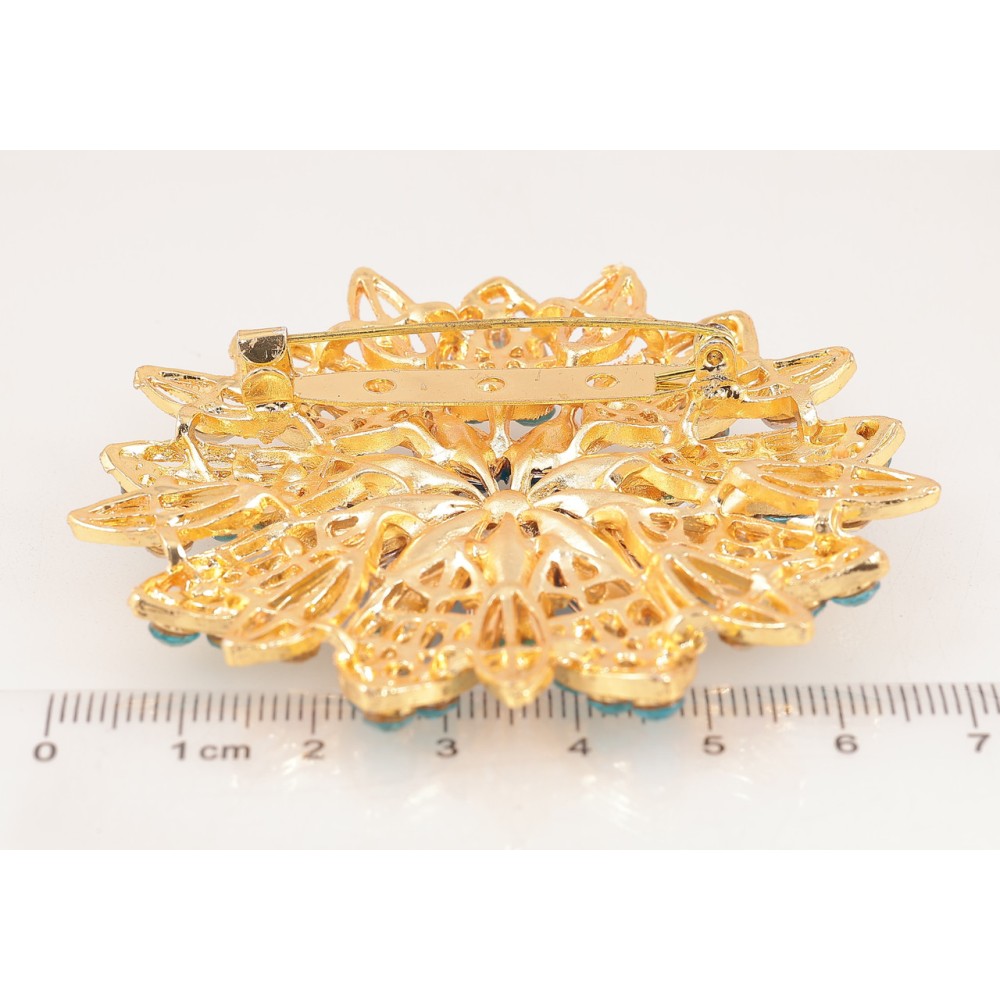 Брошь Цветок с бирюзовыми стразами