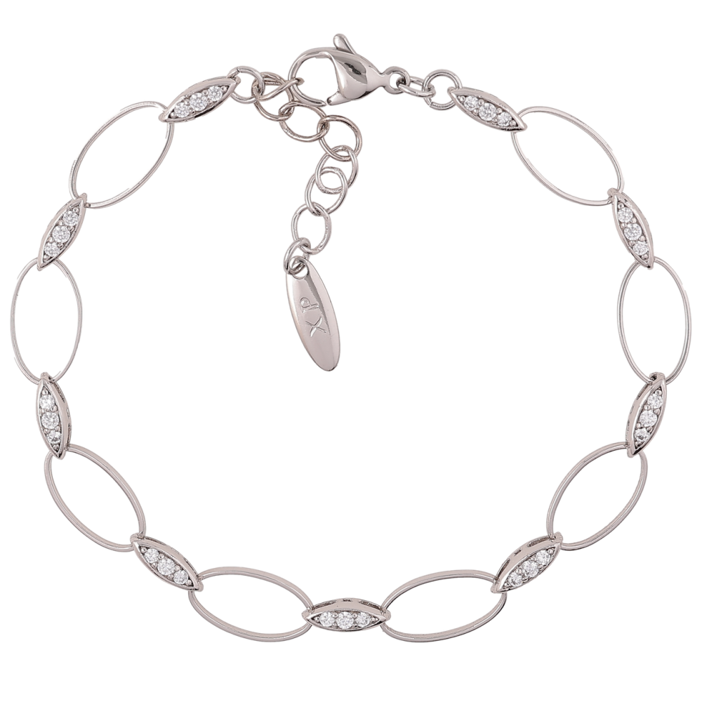 Браслет Xuping Родий Овальные звенья с цирконием размер с доп. цепочкой 18-21см х 2-7мм