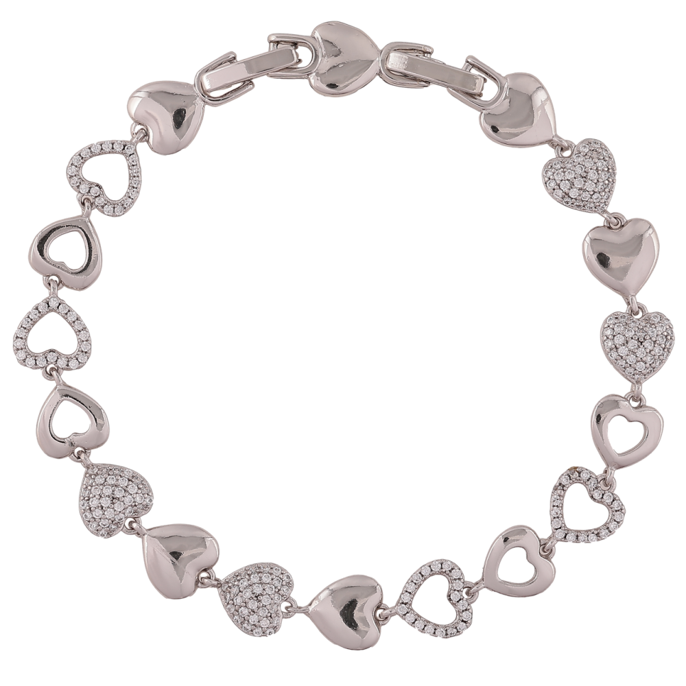 Браслет Xuping Родий Сердечки с цирконием размер с доп. замком 16.5,18.5см