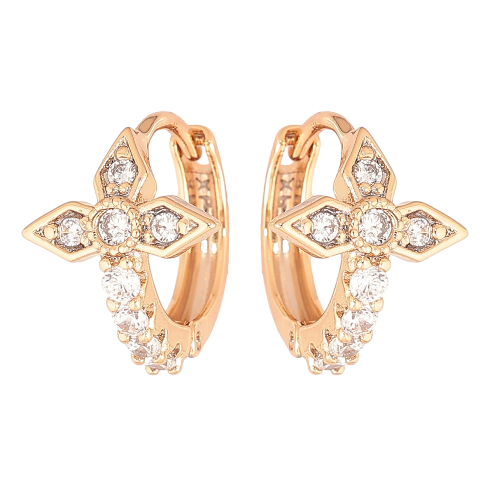Серьги Xuping Позолота 18K колечки Кристальные Крестики фото №1