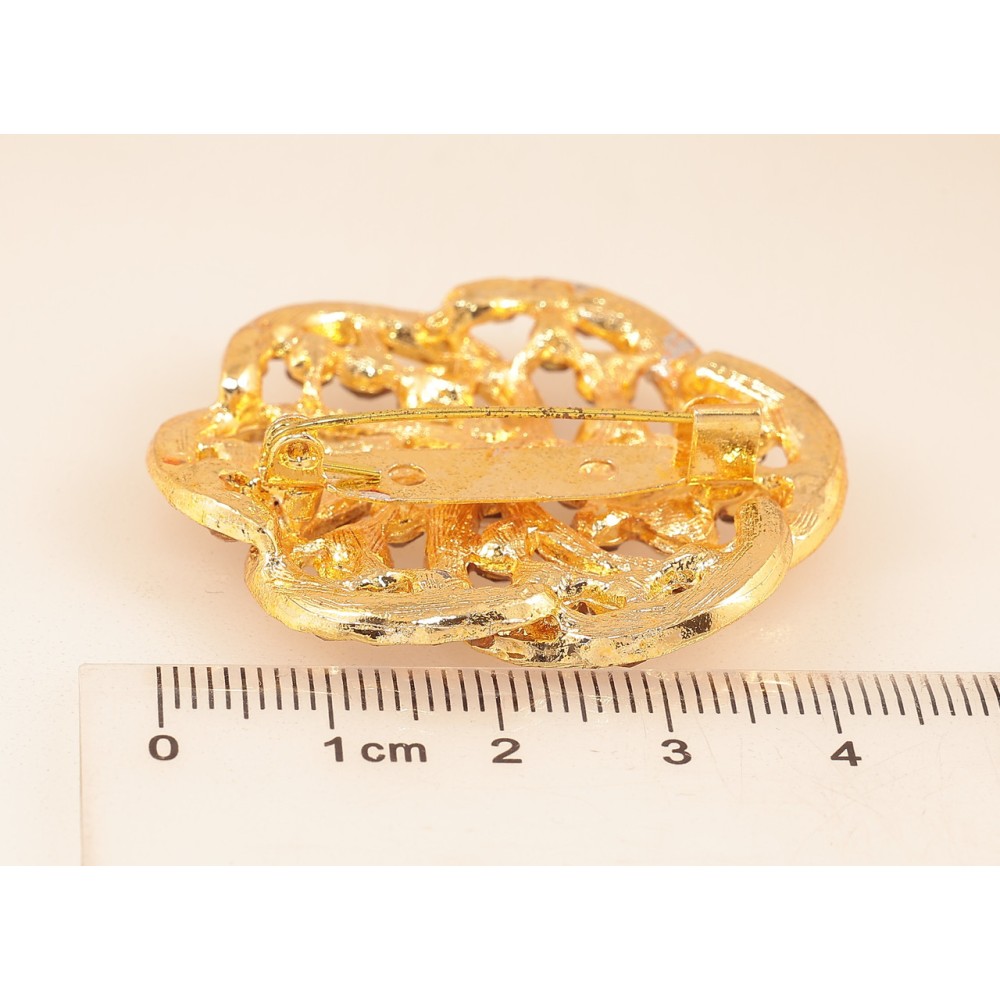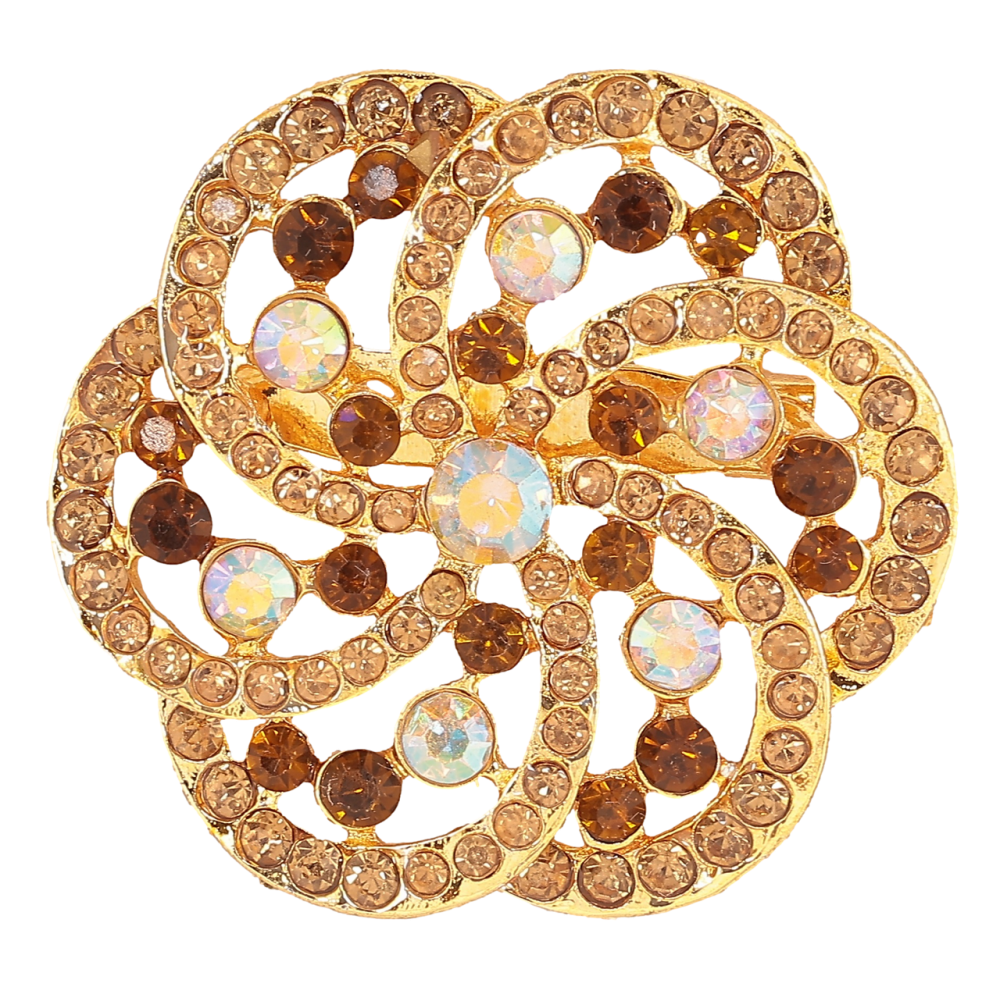 Брошь Цветок с коричневыми стразами