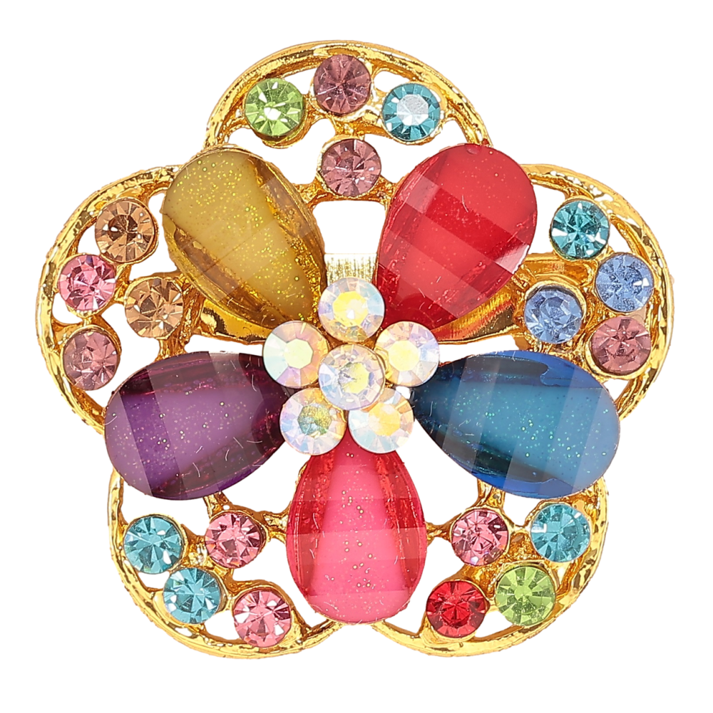 Брошь Цветок с разноцветными стразами