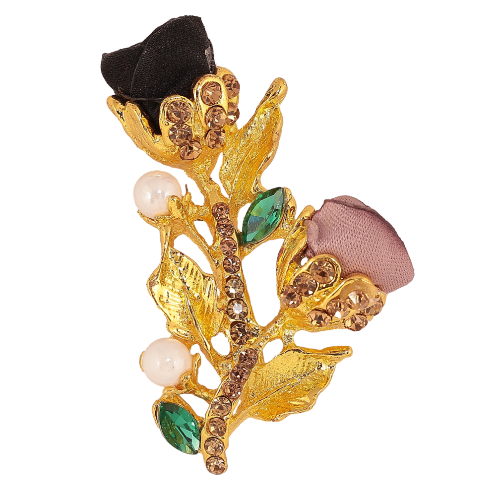 Брошь Бежево-черные цветочки со стразами