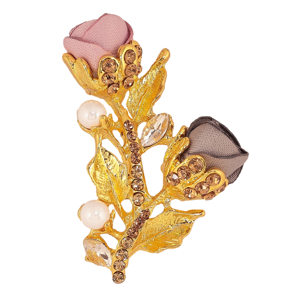 Брошь Розово-бежевые цветочки со стразами