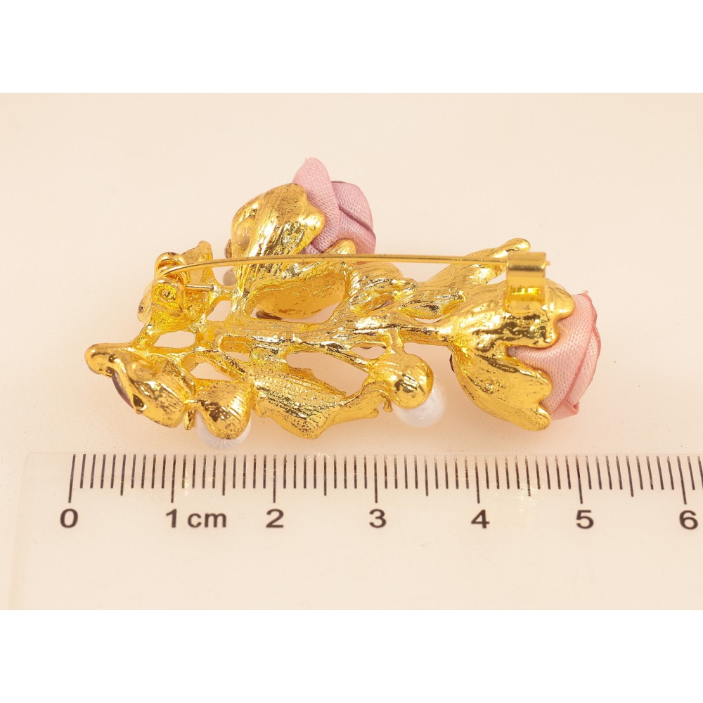 Брошь Розовые цветочки со стразами