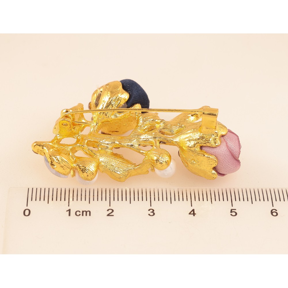 Брошь Розово-синие цветочки со стразами