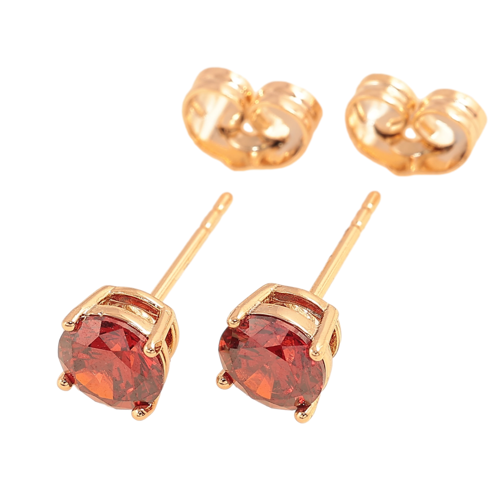 Серьги Xuping цвет позолота 18К пусеты красные кристаллы в 4-х крапановой оправе ø 6мм