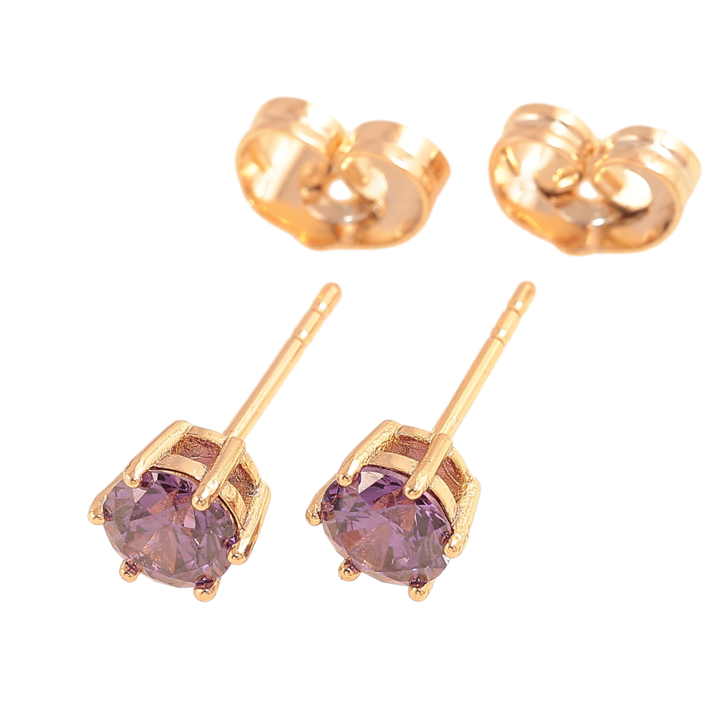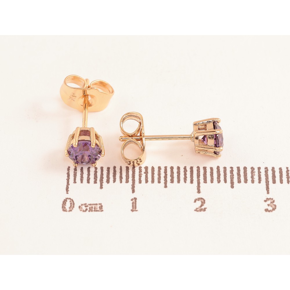 Серьги Xuping цвет позолота 18К пусеты сиреневые кристаллы в 6-ти крапановой оправе ø 5мм
