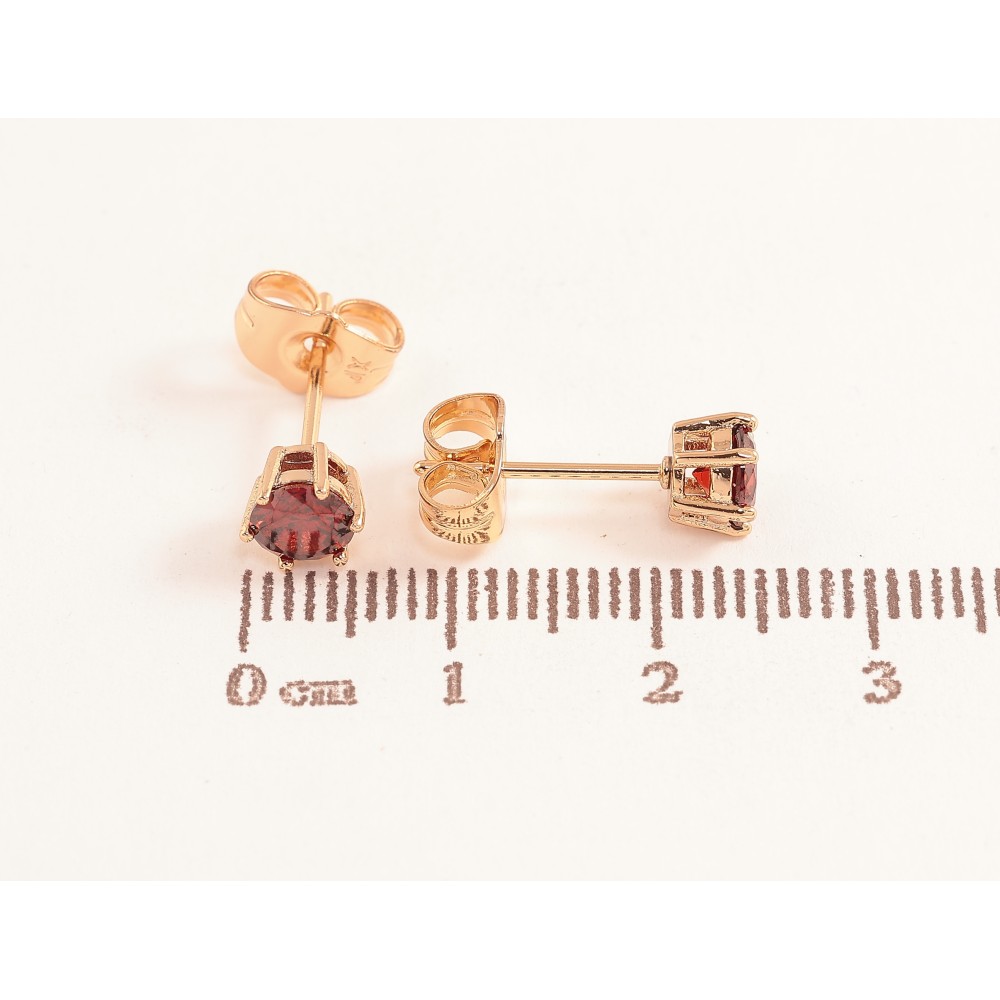 Серьги Xuping цвет позолота 18К пусеты красные кристаллы в 6-ти крапановой оправе ø 5мм
