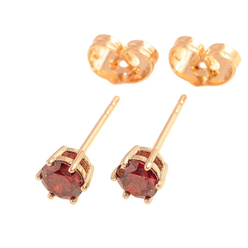 Серьги Xuping цвет позолота 18К пусеты красные кристаллы в 6-ти крапановой оправе ø 5мм фото №1