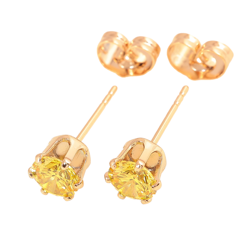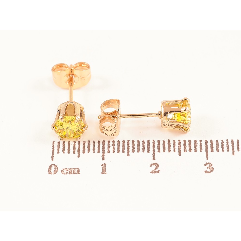 Серьги Xuping цвет позолота 18К пусеты желтые кристаллы в 6-ти крапановой оправе ø 6мм