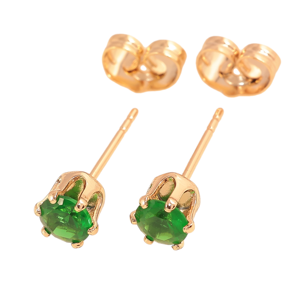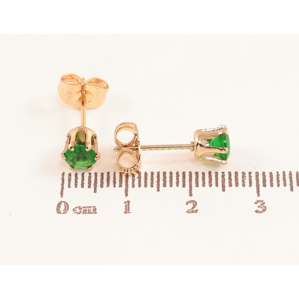 Серьги Xuping цвет позолота 18К пусеты зеленые кристаллы в 6-ти крапановой оправе ø 5мм