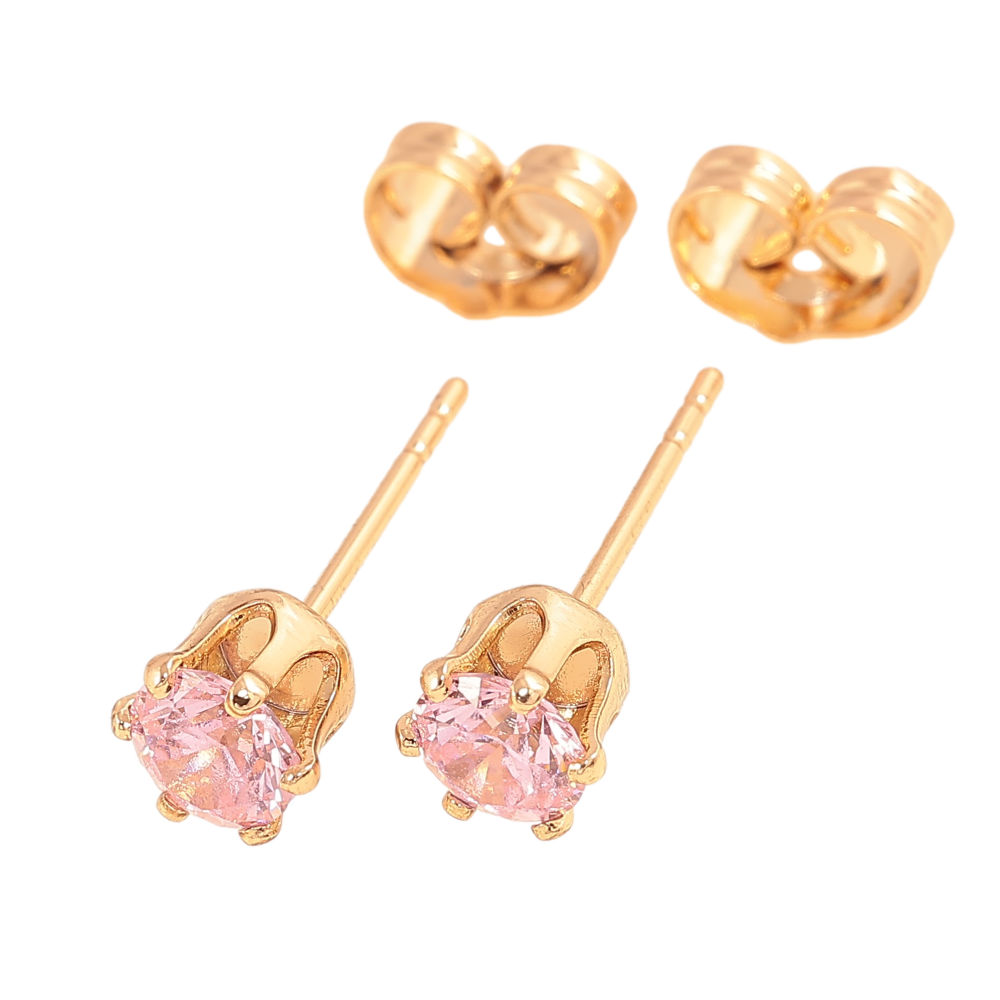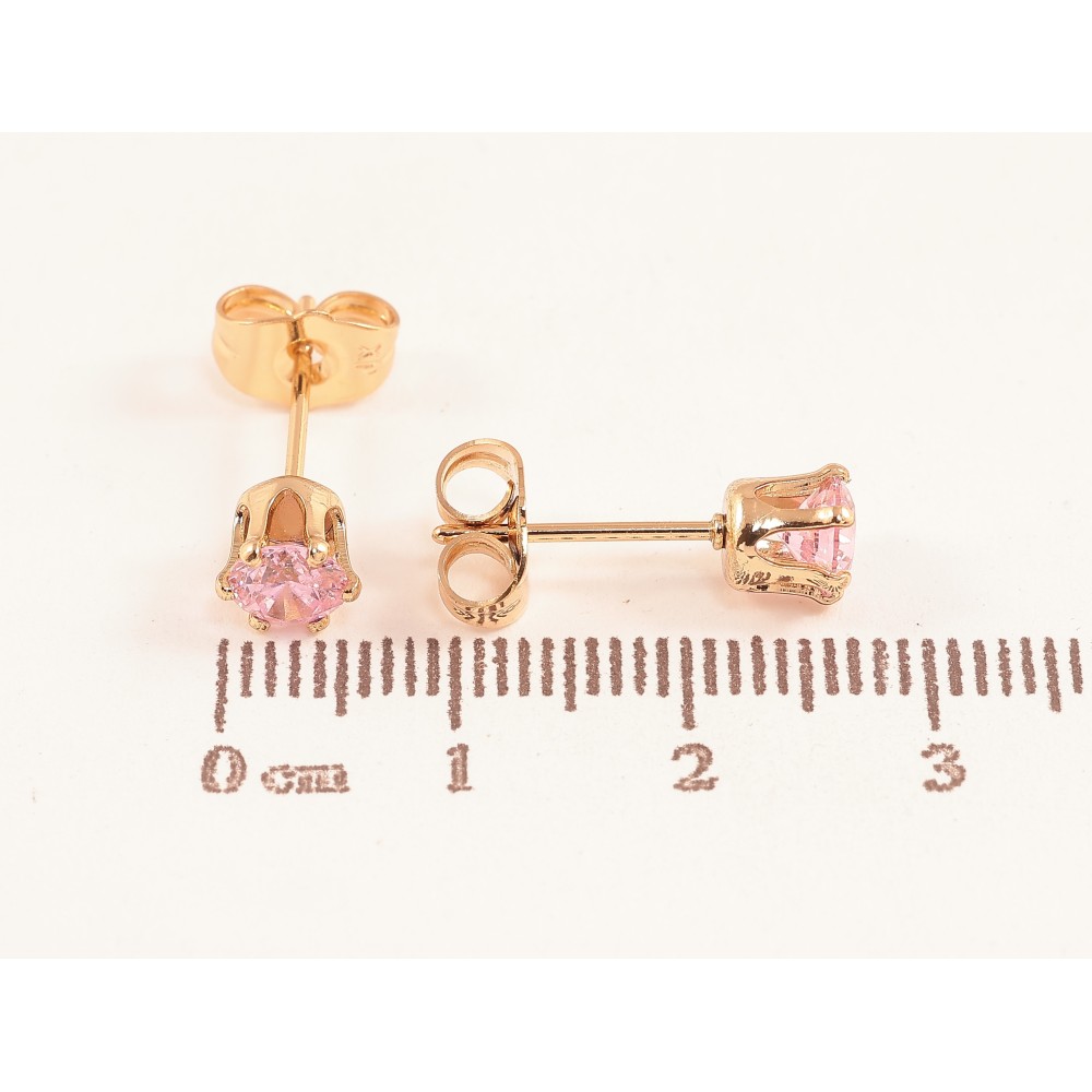 Серьги Xuping цвет позолота 18К пусеты розовые кристаллы в 6-ти крапановой оправе ø 5мм