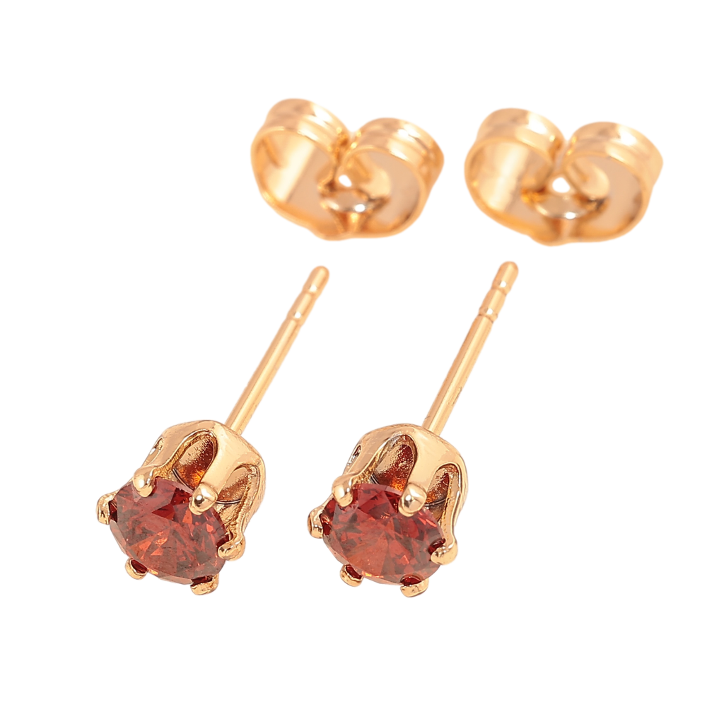 Серьги Xuping цвет позолота 18К пусеты красные кристаллы в 6-ти крапановой оправе ø 5мм