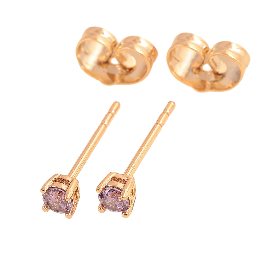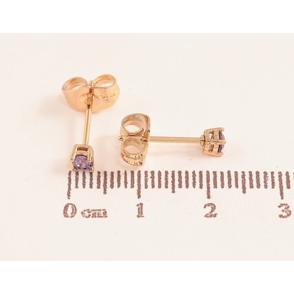 Серьги Xuping цвет позолота 18К пусеты сиреневые кристаллы в 4-х крапановой оправе ø 3мм