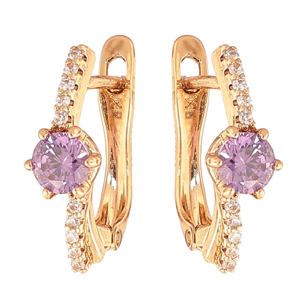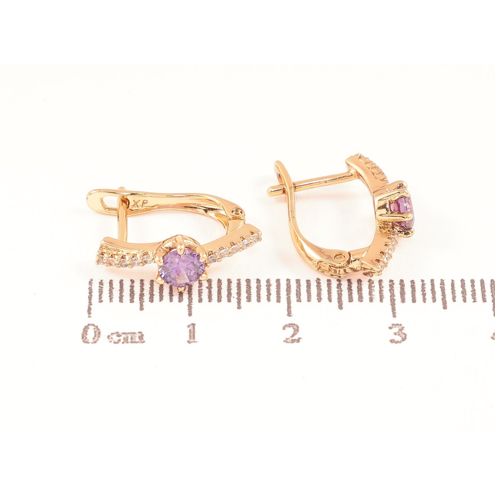 Серьги Xuping цвет позолота 18K английский замок узор с сиреневыми кристаллами