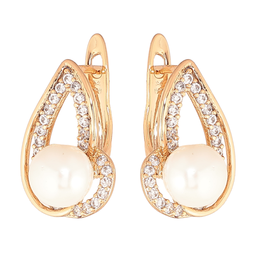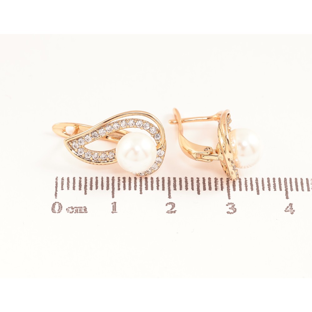 Серьги Xuping цвет позолота 18K английский замок узор с кристаллами и жемчужинами