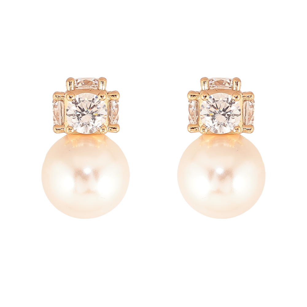 Серьги Xuping цвет Позолота 18К пусеты "Жемчужины с кристальными шариками"