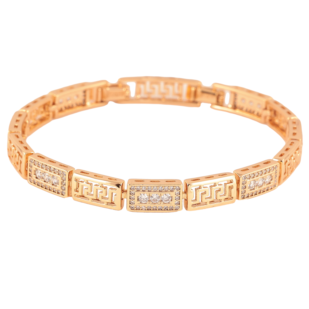 Браслет Xuping цвет Позолота 18К "Греческий узор с инкрустацией кристаллами" размер с доп. замком 17,19.5см х 5мм