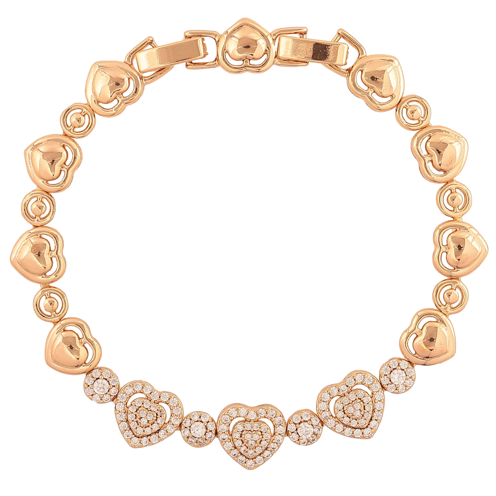 Браслет Xuping цвет Позолота 18K "Сердечки с кристаллами" размер с доп. замком 17, 19см х 5-10мм