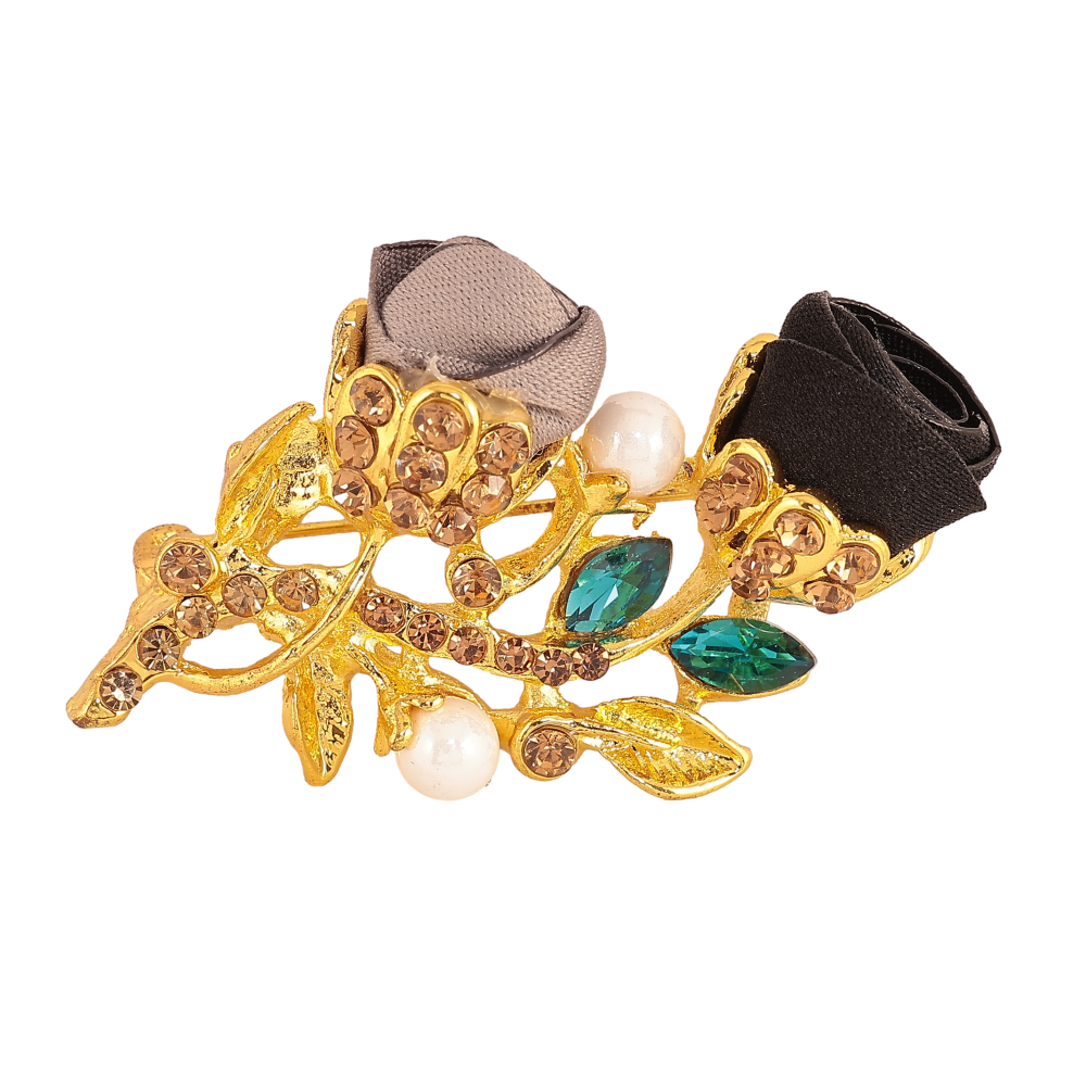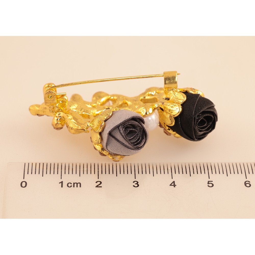 Брошь "Черный и бежевый цветочки"