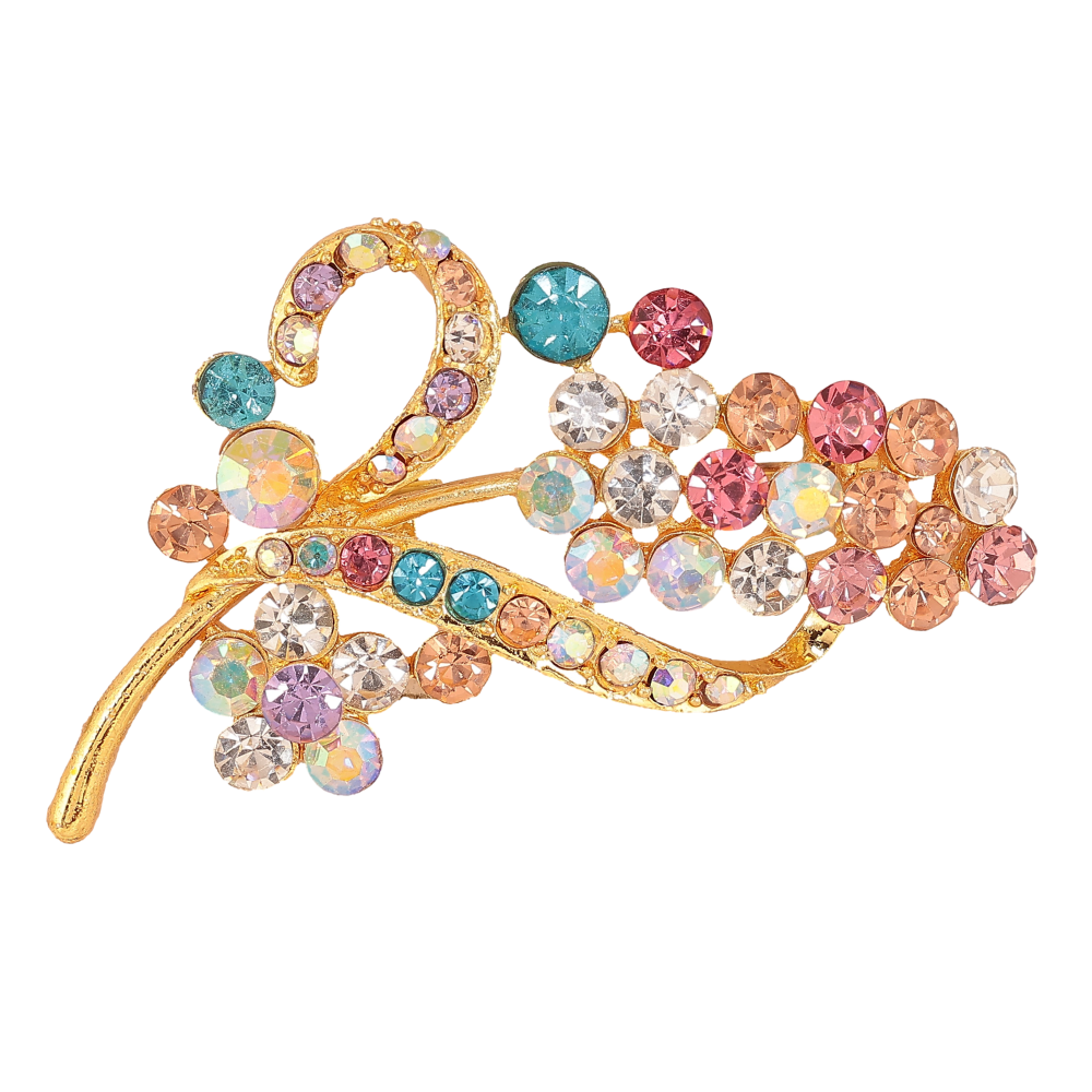 Брошь "Веточка с разноцветными стразами"