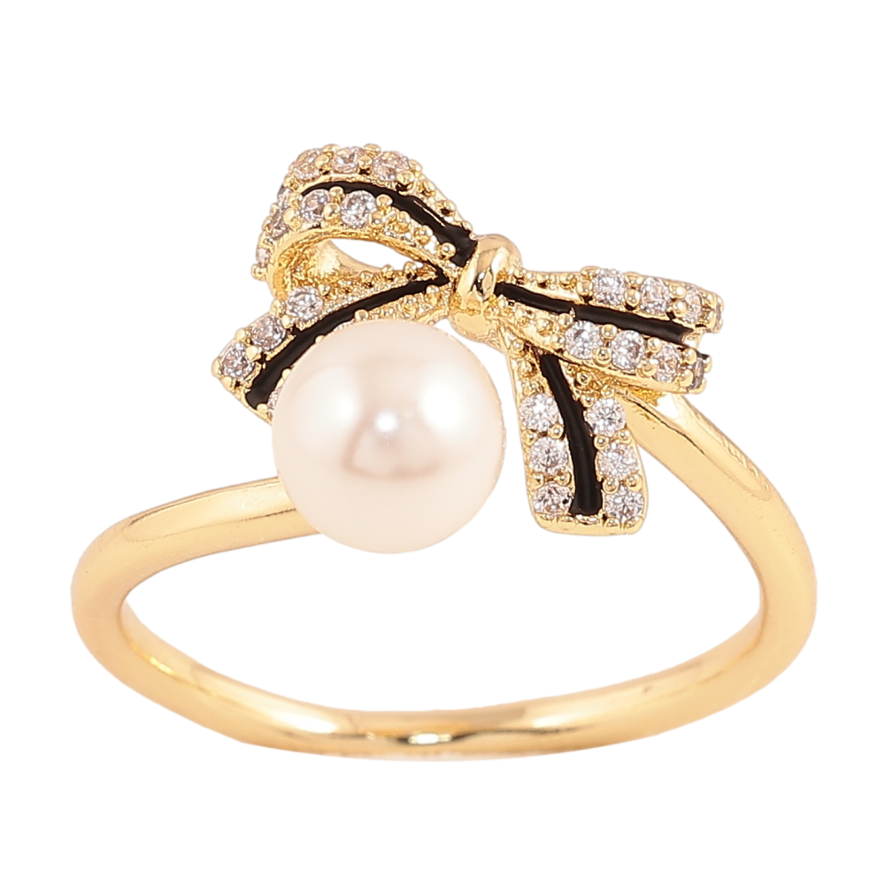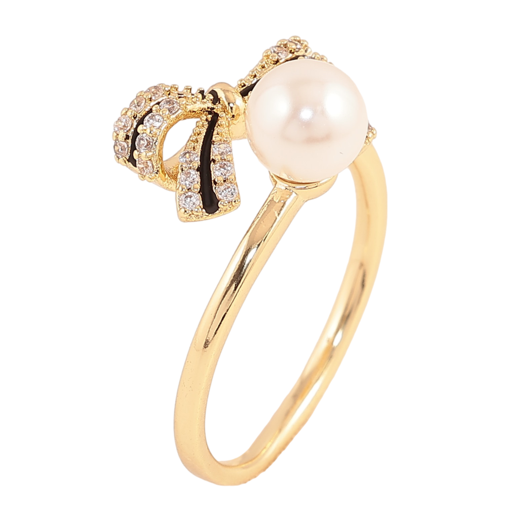 Кольцо Xuping цвет Позолота 14K "Бант с кристаллами, черной эмалью и жемчужиной"