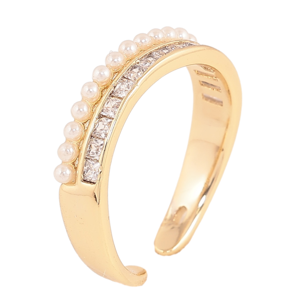 Кольцо Xuping цвет Позолота 14K "Дорожки кристаллов и жемчужин" фото №1
