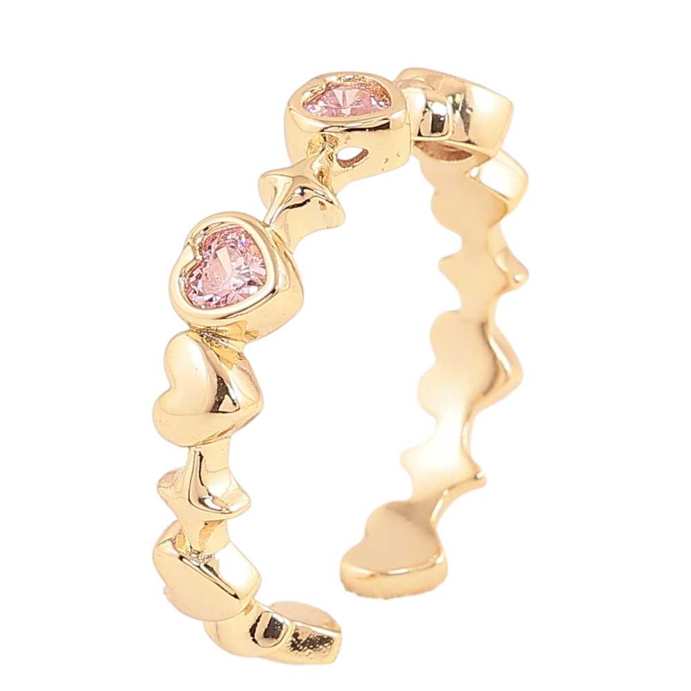 Кольцо Xuping цвет Позолота 14K "Розовые кристальные сердечки" фото №1