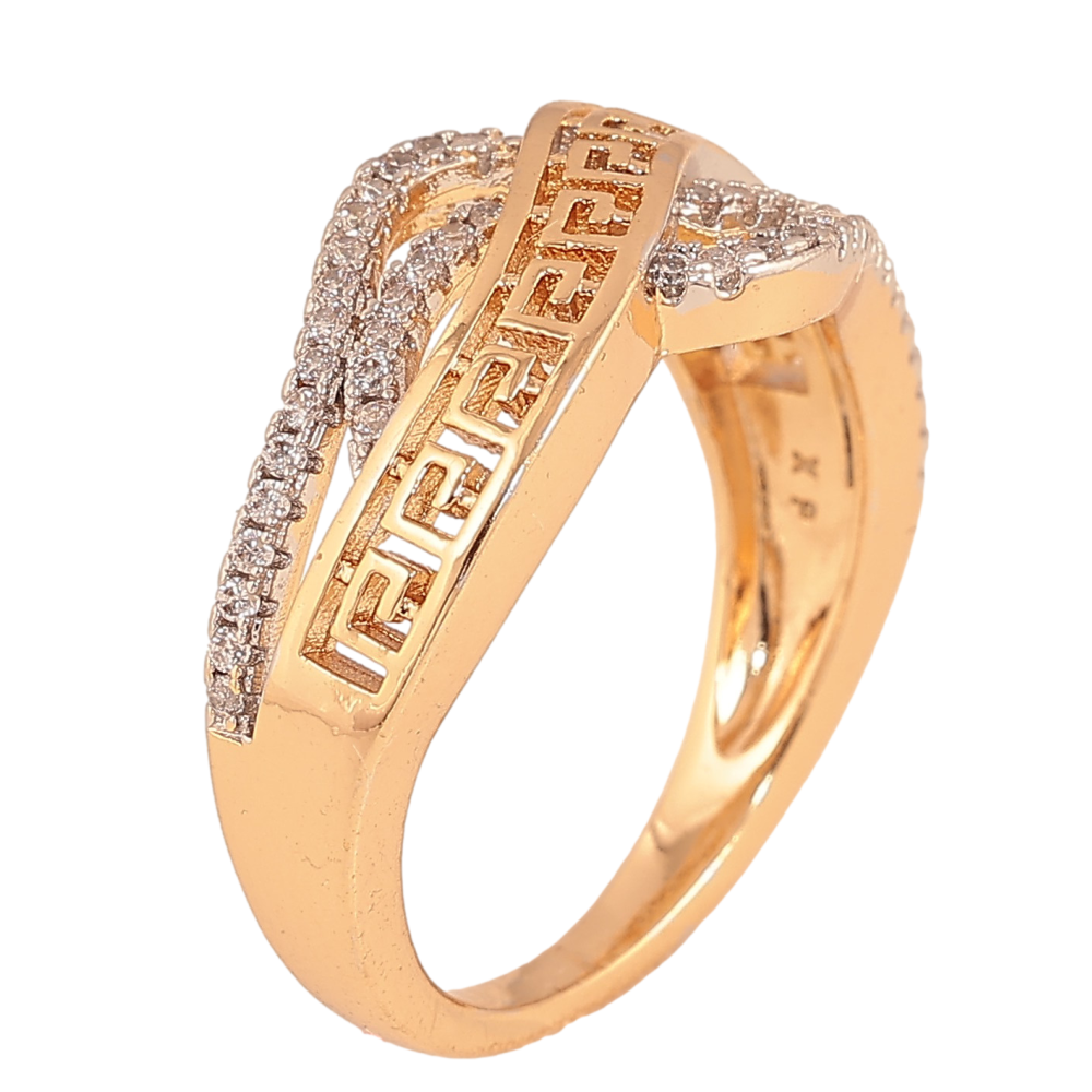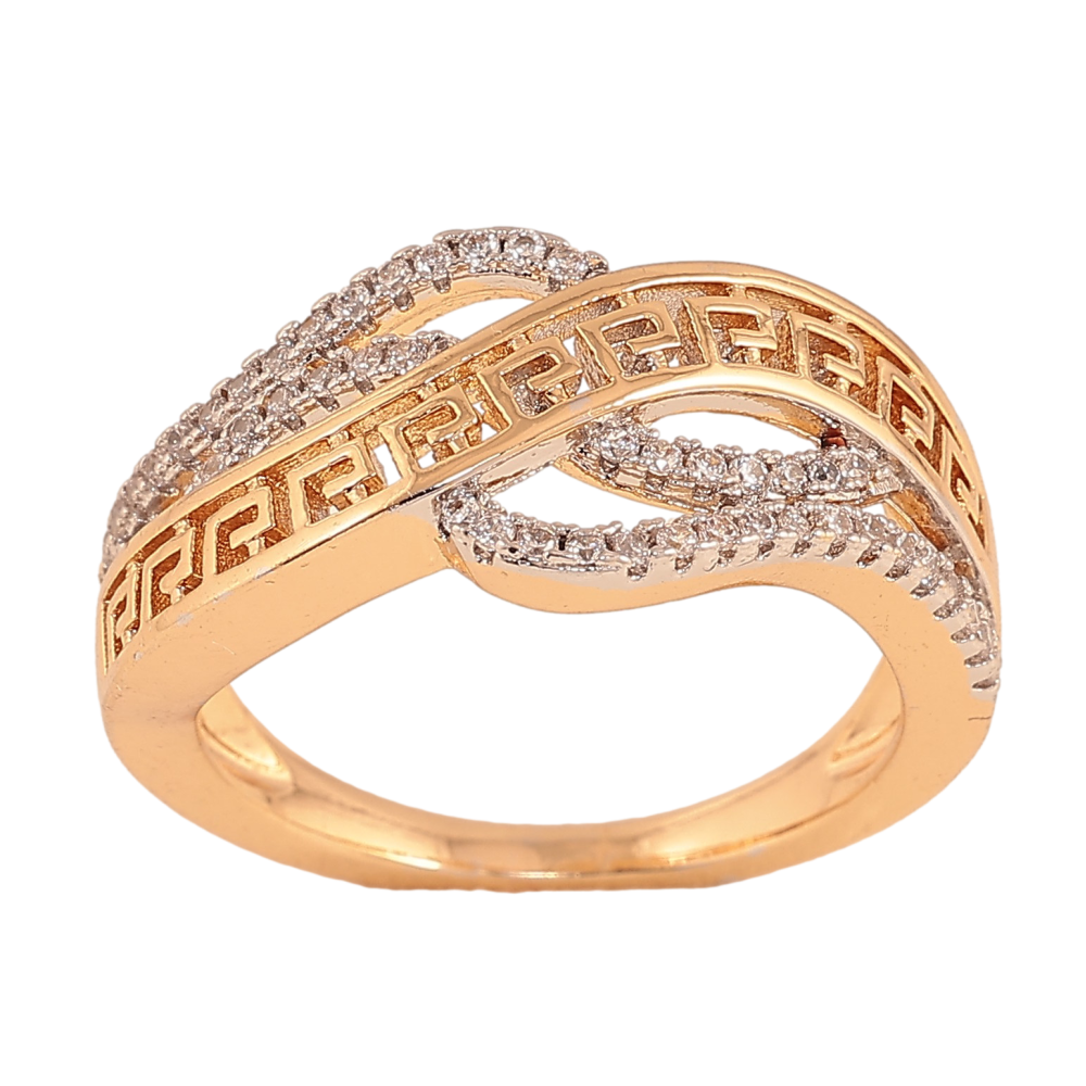 Кольцо Xuping цвет Позолота 18K+Родий "Меандровая линия с волнистыми дорожками кристаллов"