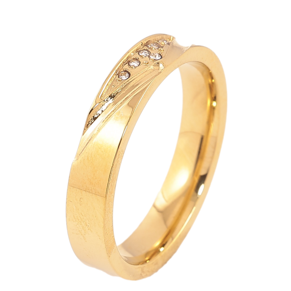 Кольцо Xuping TTM Stainless Steel цвет 14К "Узор с кристаллами" шир. 4мм