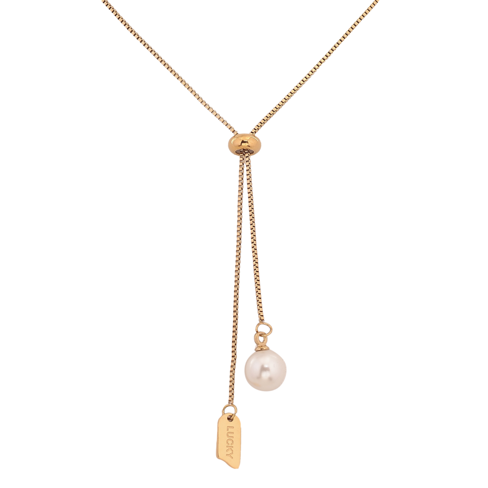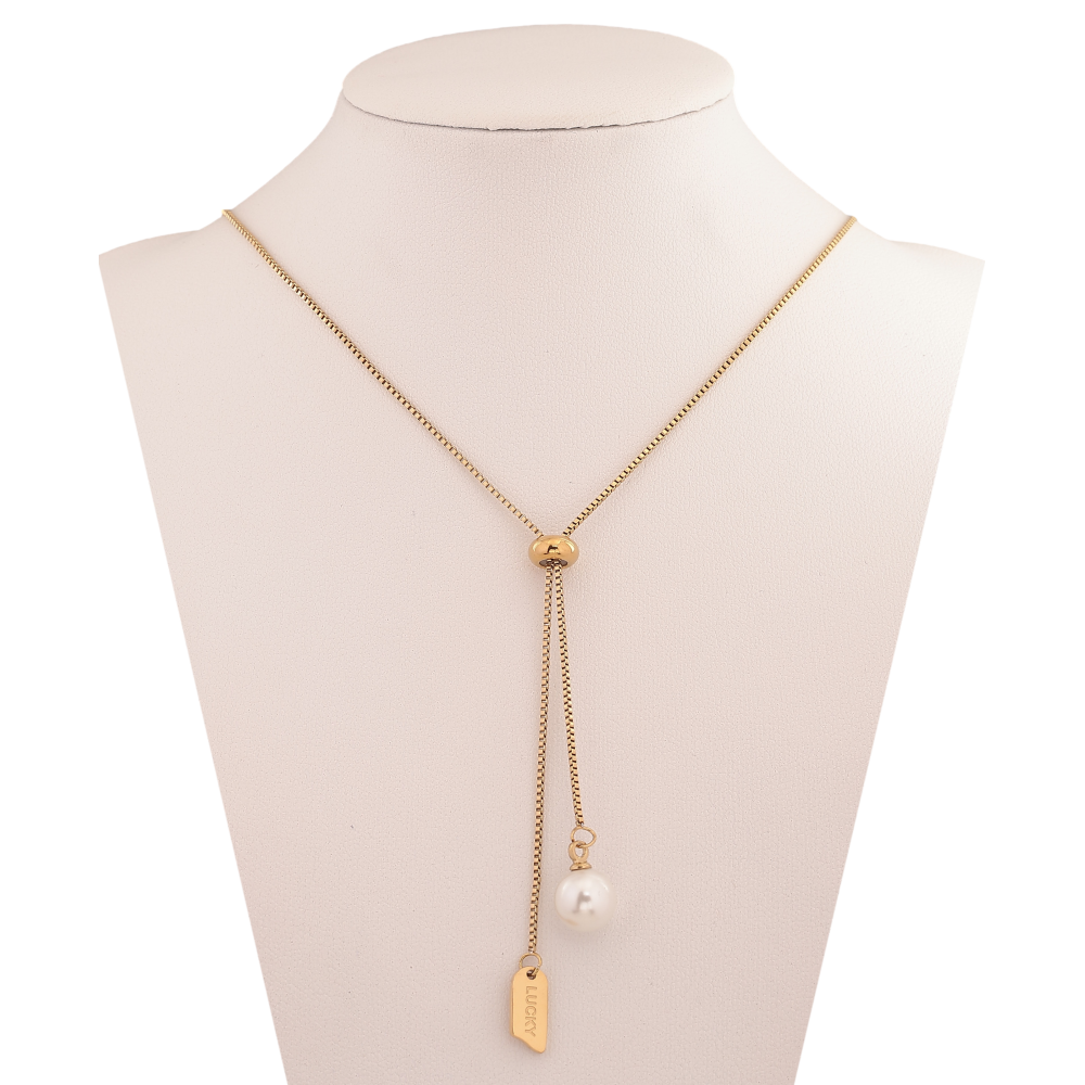 Колье Xuping ТТМ Stainless Steel цвет 14К "Цепочка с бегунком и жемчужными подвесками" длина 55-60см х 1мм