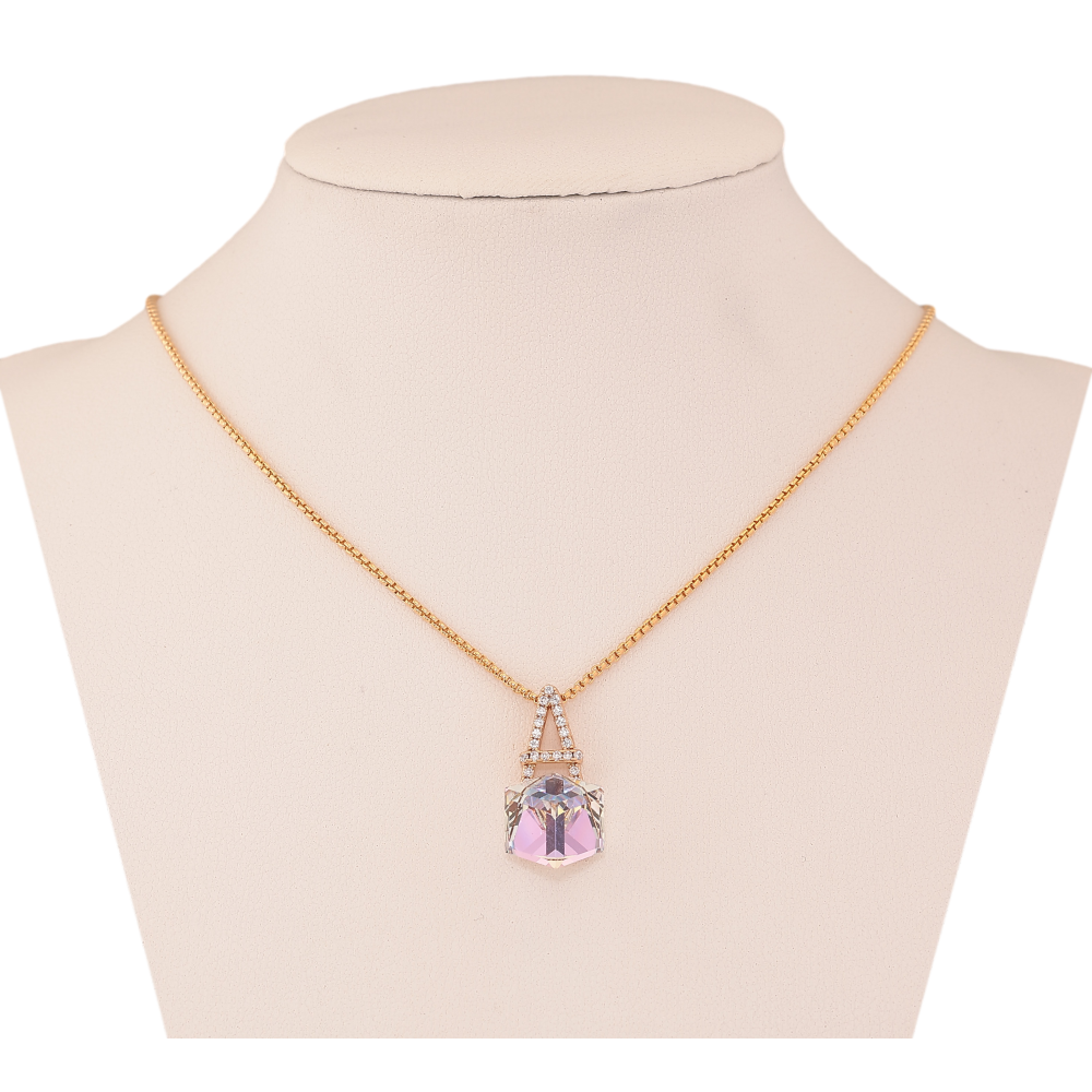 Кулон Xuping цвет 18K с кр-ми Swarovski на цепочке "Буква А с кристальным кубом Smoky Mauve" длина 40-45см х 1мм