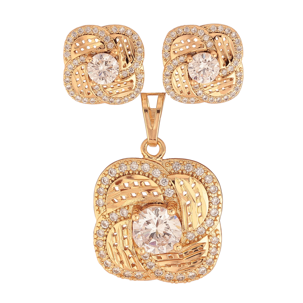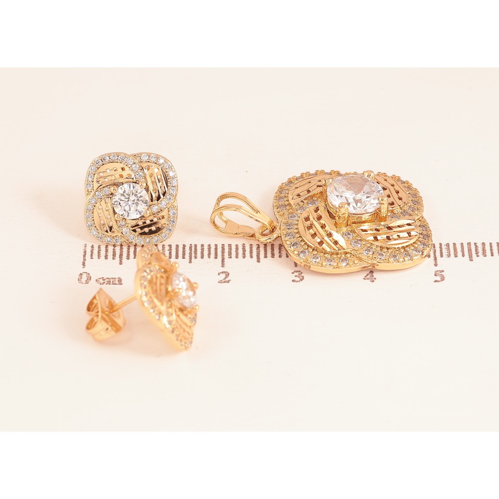Набор Xuping цвет Позолота 18K Серьги Кулон "Четырехлистные цветочки с кристаллами"
