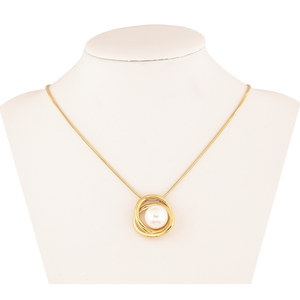 Подвеска на цепочке Нержавеющая сталь "Узор с жемчужиной" длина 42-47см х 1мм