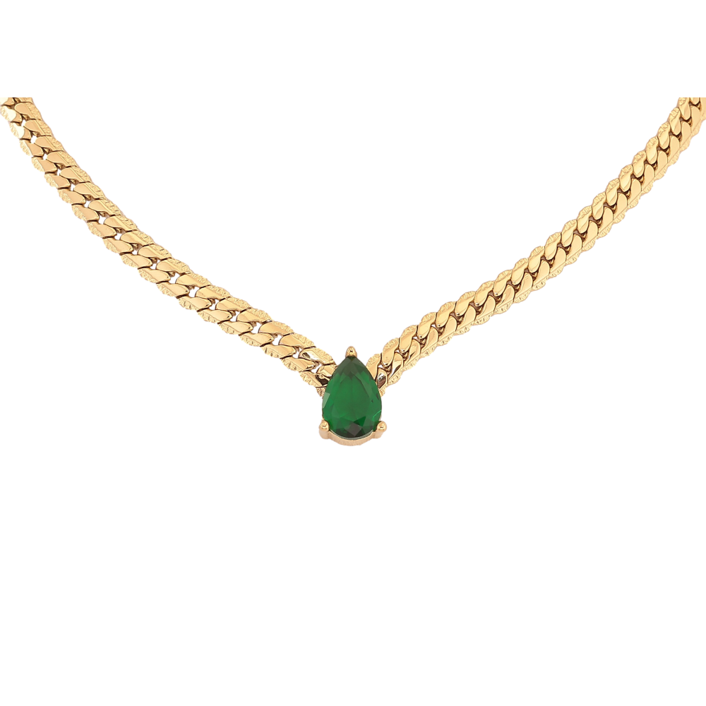 Подвеска на цепочке Нержавеющая сталь "Зеленая кристальная капелька" длина 41-46см х 4мм
