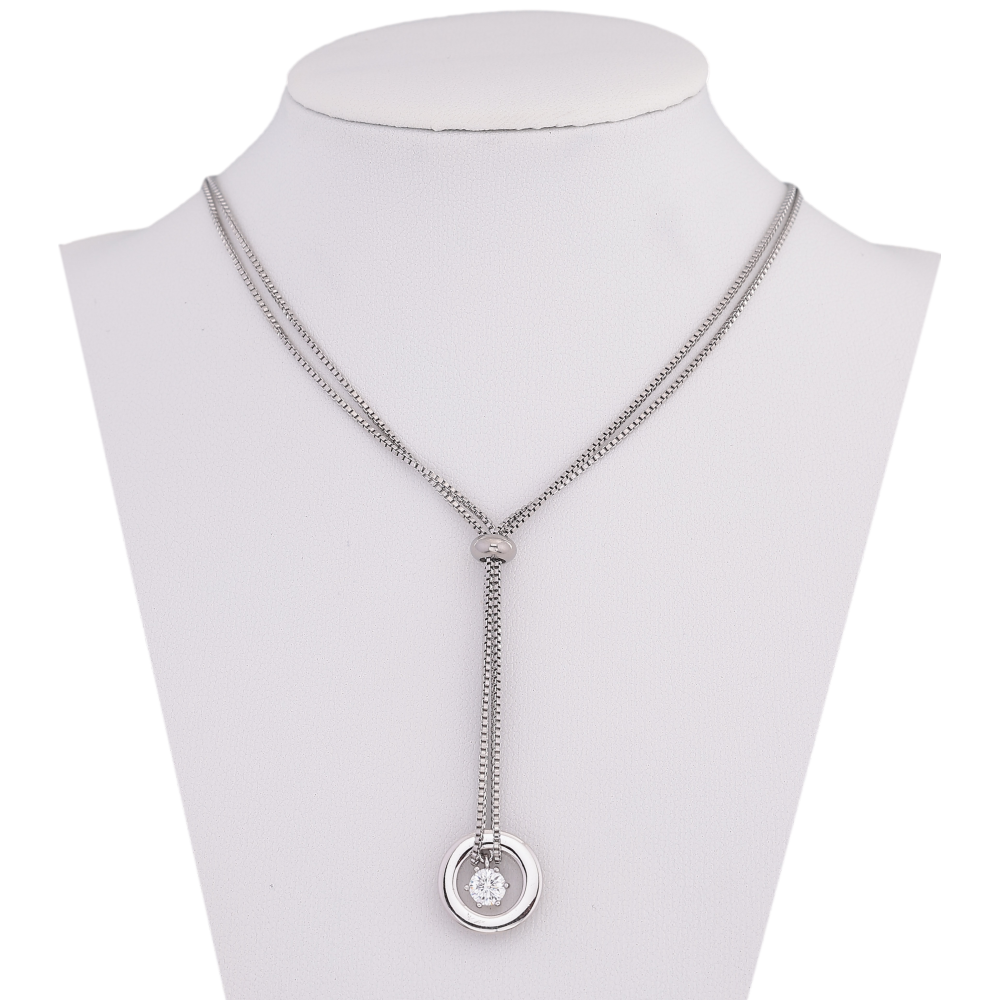 Подвеска на цепочке Xuping ТТМ Stainless Steel цвет Родий "Кристалл в колечке" длина 40-45см х 2мм