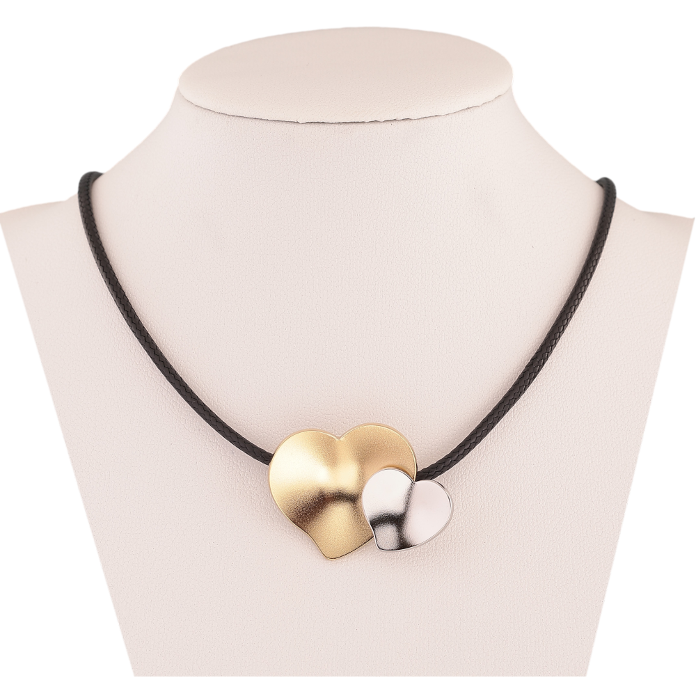 Подвеска на шнуре Xuping ТТМ Stainless Steel цвет 14К+Родий "Сердечки" длина 46-51см х 2мм
