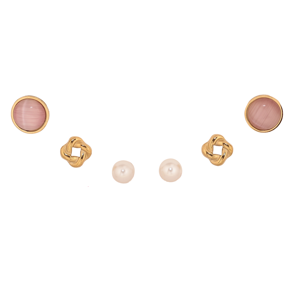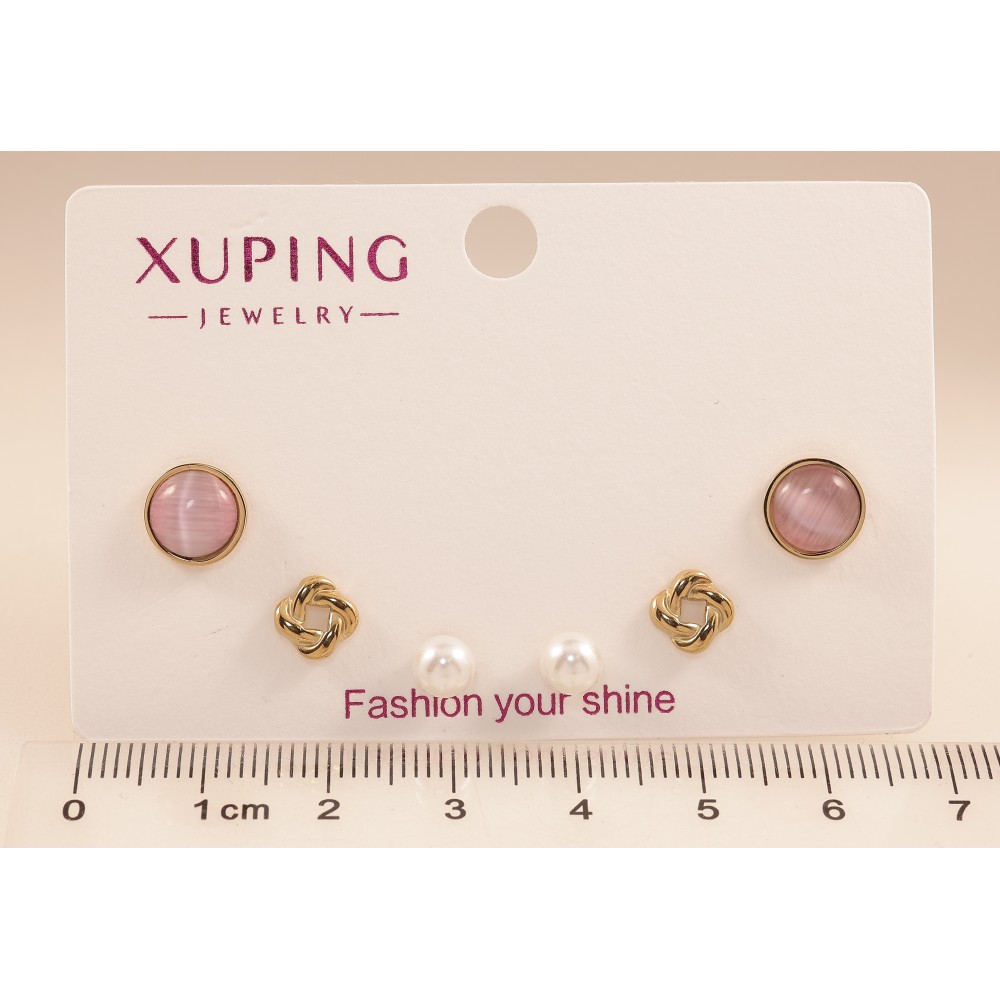 Серьги Набор (3 пары) Xuping TTM Stainless Steel цвет 14К пусеты "Кристаллы, цветочки и жемчужины" ø 5мм, 8мм