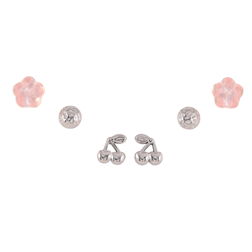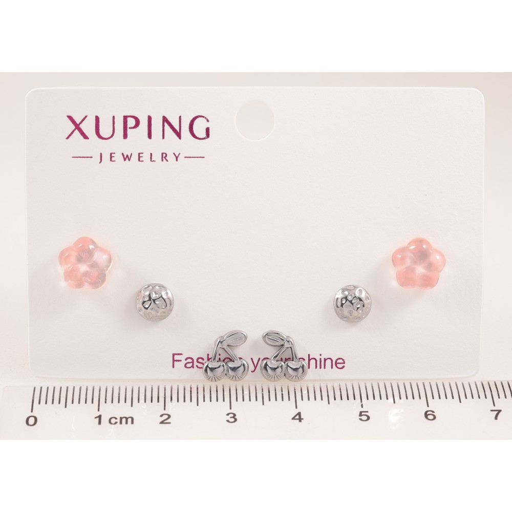 Серьги Набор (3 пары) Xuping TTM Stainless Steel цвет Родий пусеты "Цветочки, круги и вишенки" ø 6мм