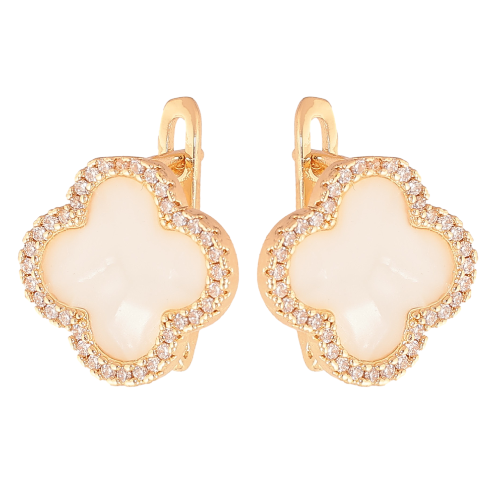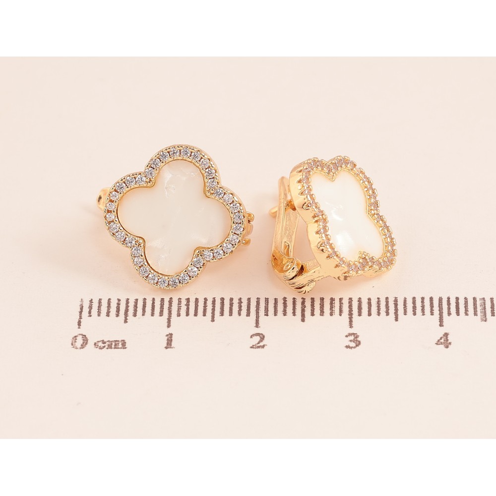 Серьги Нержавеющая сталь английский замок "Клевер с перламутровыми вставками и кристаллами"