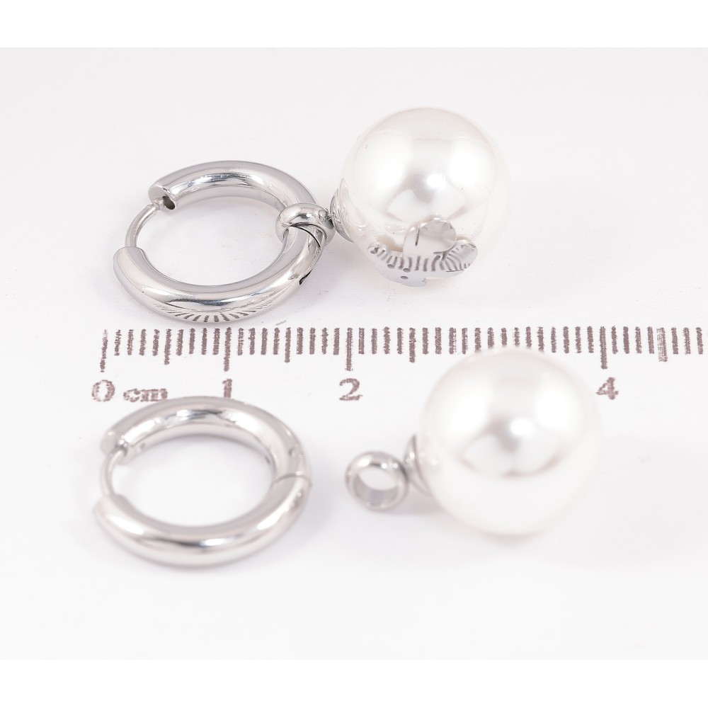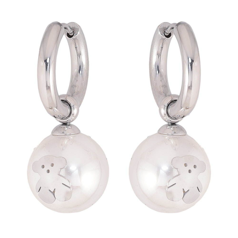 Серьги Нержавеющая сталь подвески на колечках "Жемчужины с мишками" 2 в 1, ø 14мм
