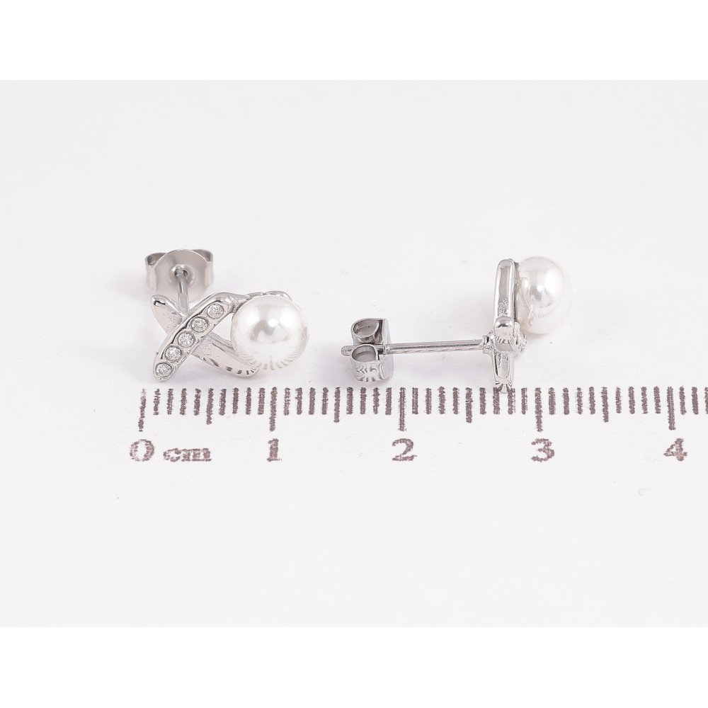 Серьги Нержавеющая сталь пусеты "Крестики с жемчужинами"