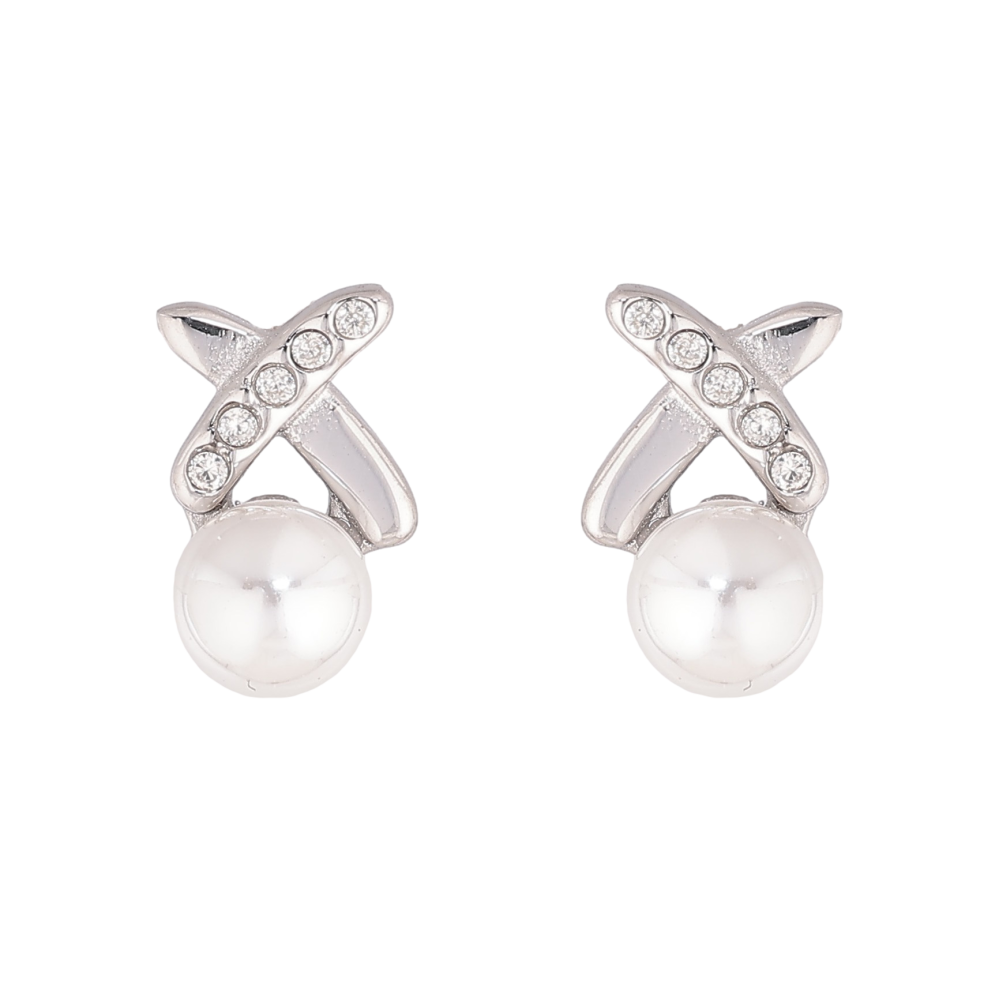 Серьги Нержавеющая сталь пусеты "Крестики с жемчужинами" фото №1