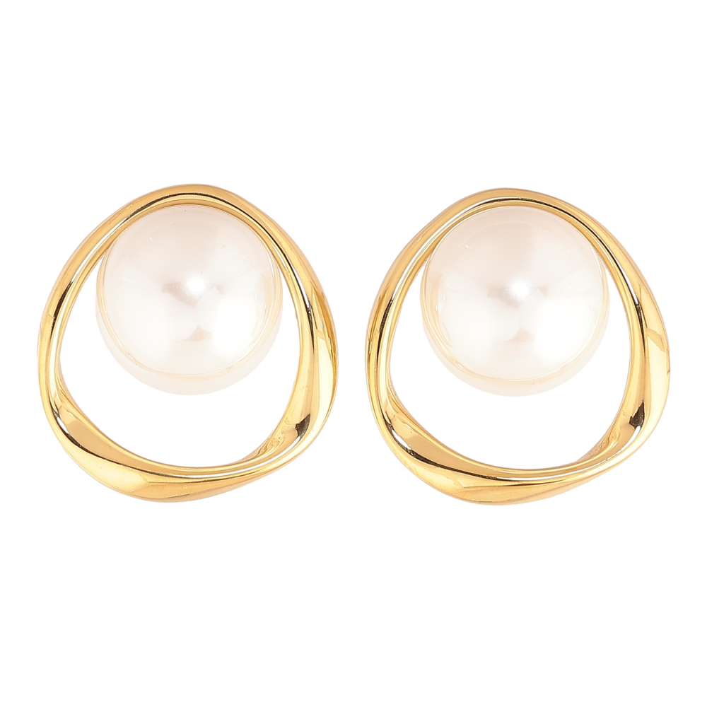 Серьги Нержавеющая сталь пусеты "Колечки с жемчужинами"