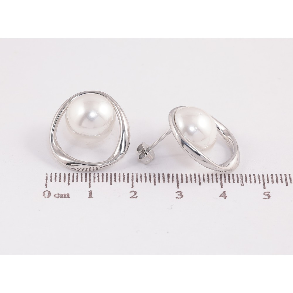 Серьги Нержавеющая сталь пусеты "Колечки с жемчужинами" фото №1