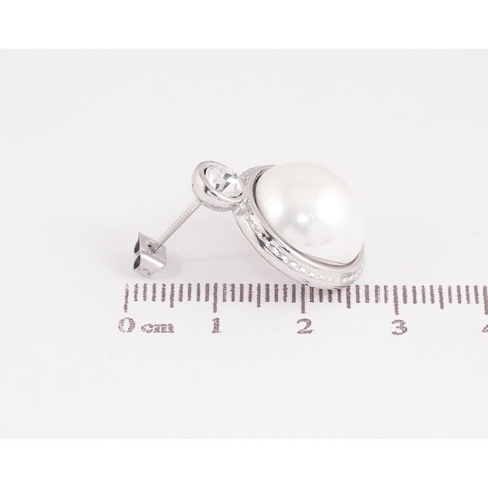 NEW Серьги Нержавеющая сталь пусеты "Кристалл с жемчужиной" фото №1